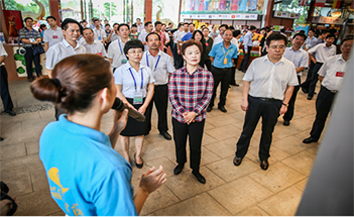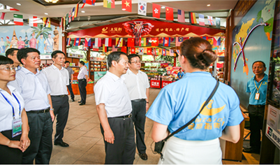2016年7月28日玉林市市委书记王凯陪同广西区人民政府自治区党委书记彭清华到五彩田园东盟土货集市区指导工作